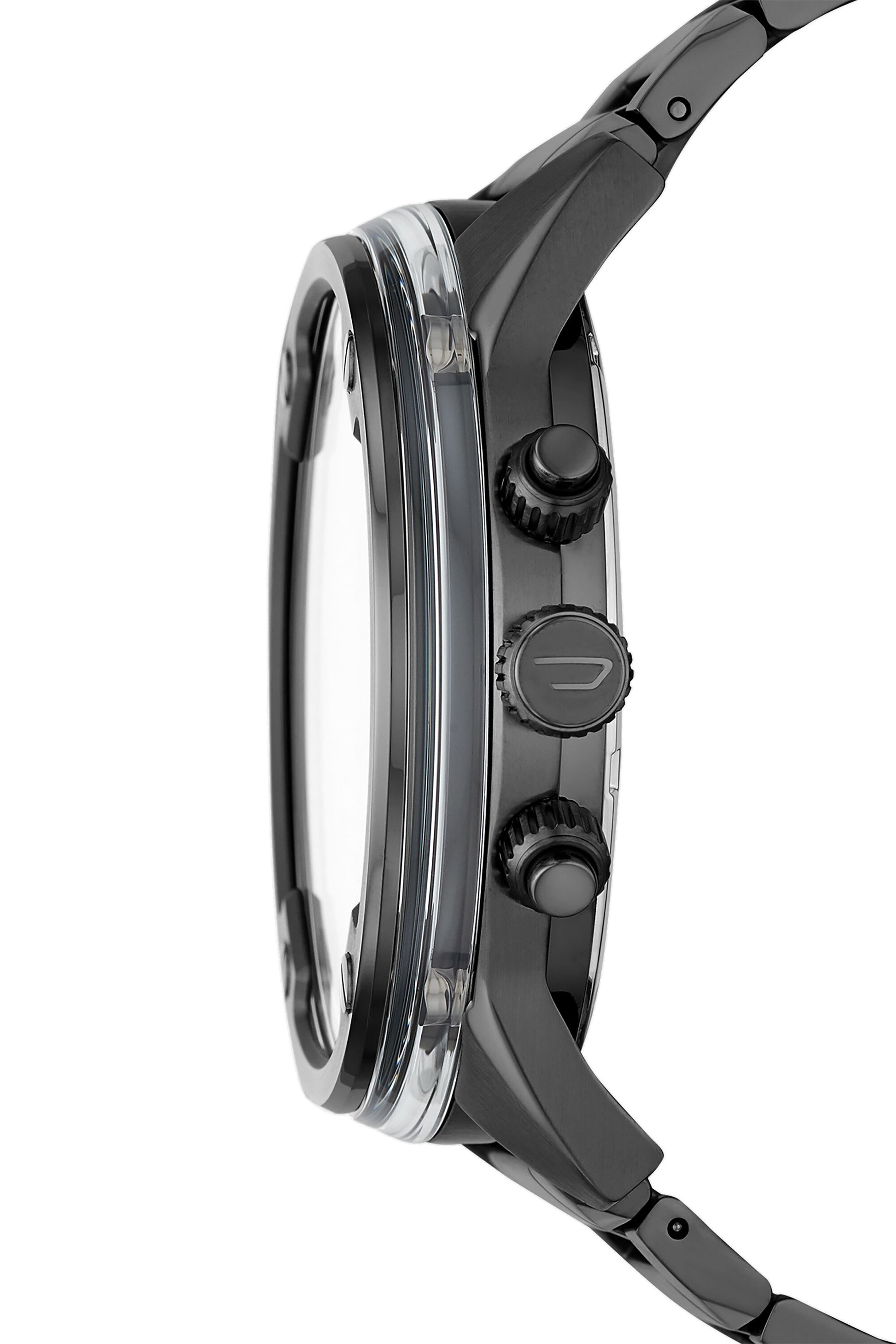 This Diesel Boltdown watch features a gray dial and two sub dials with gunmetal black indexes and numerals, three-hand movement and gunmetal stainless steel bracelet.