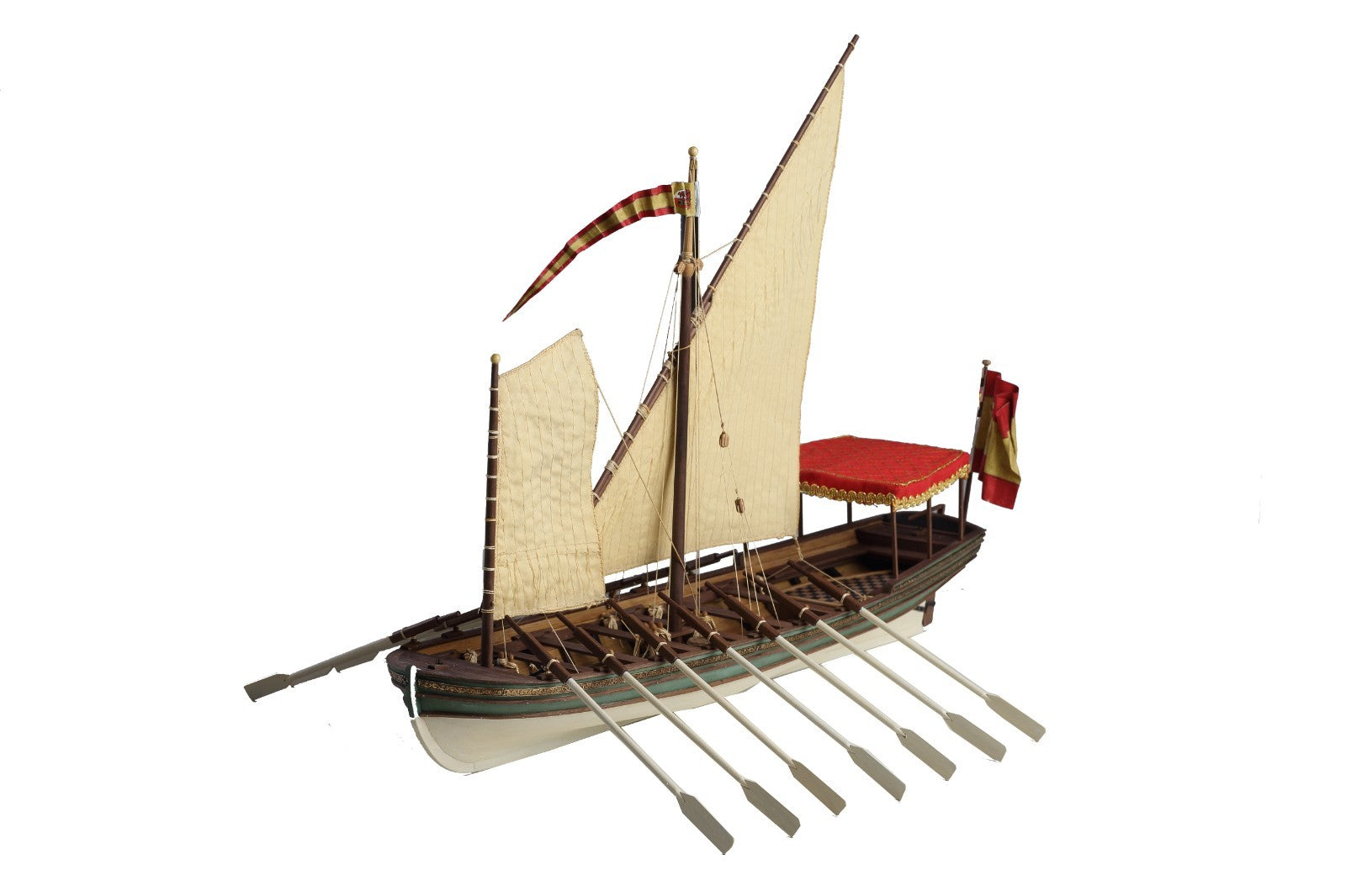 - Detailed hardware: Complete with rigging cords, decorative pieces, and cast-metal fittings.