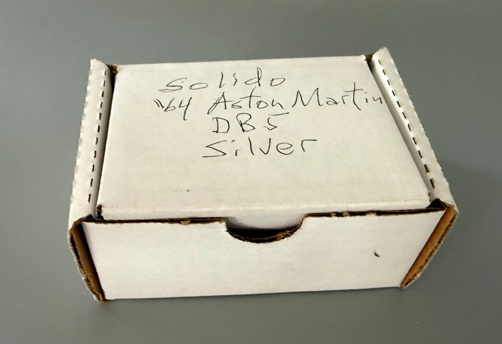 The model is in good condition, showing only light wear consistent with age and handling. It comes in a plain replacement box with handwritten labeling (not the original Solido packaging).